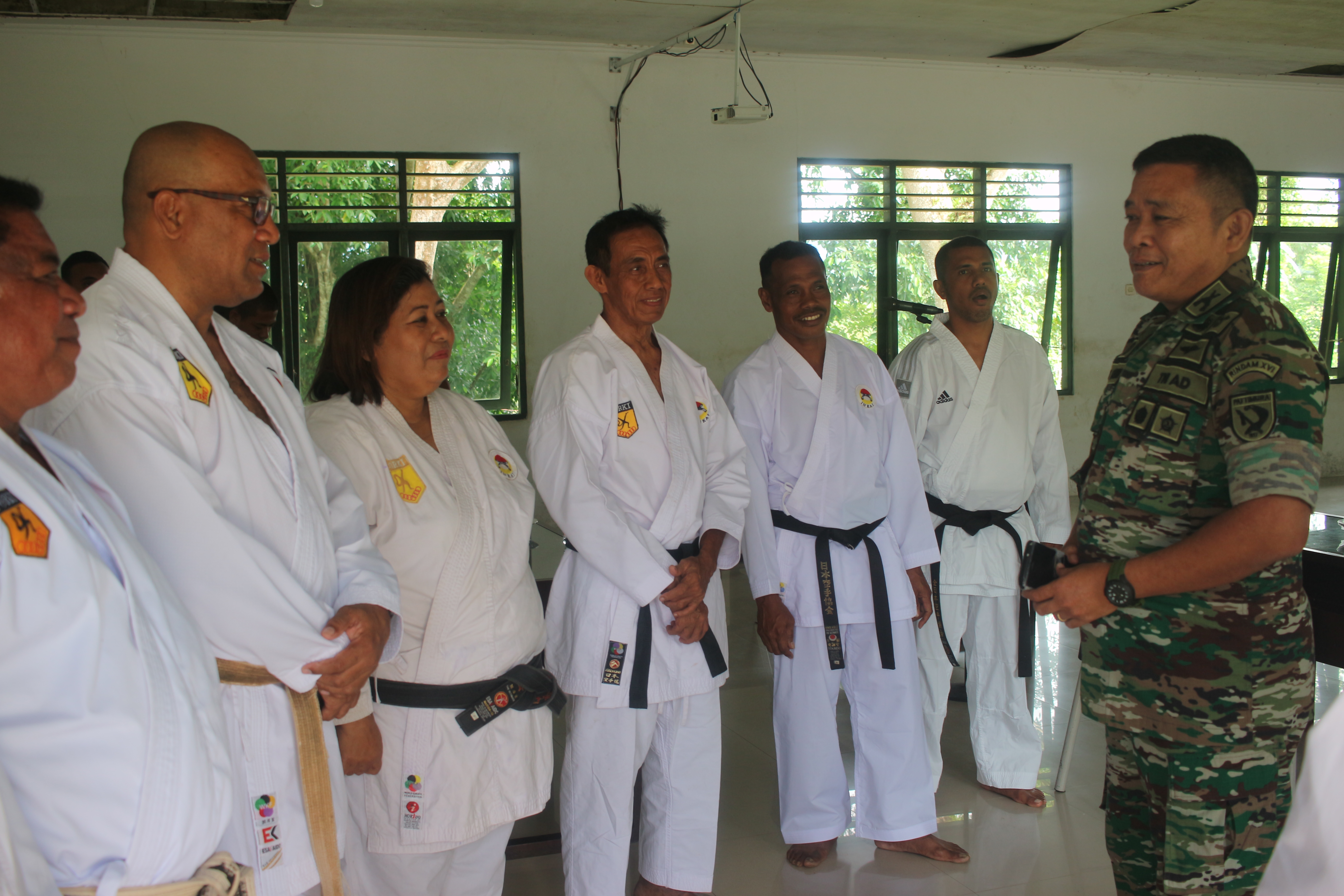 Komandan Rindam XVI/Pattimura sambut kunjungan Tim Penguji kenaikan Sabuk Karate dari INKAI Maluku yang akan dilaksanakan kepada Serdik dan Organik Rindam XVI/Pattimura.